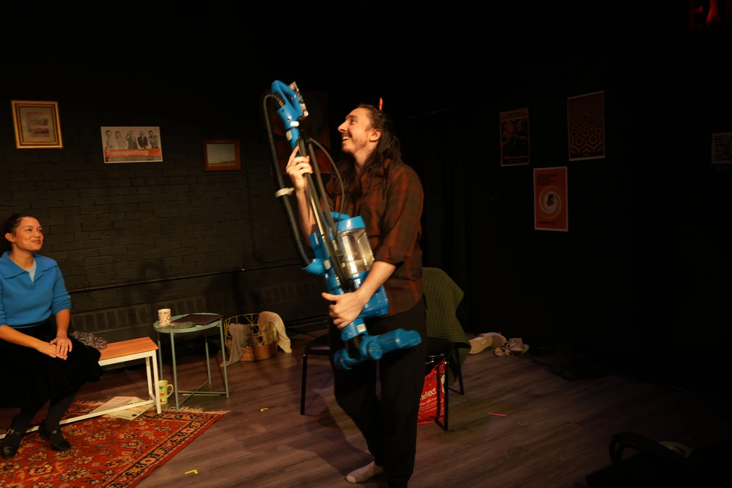 Make Yourself At Home follows Michael, a man struggling with agoraphobia at the height of his anxiety. After losing his girlfriend, Michael attempts to heal in the confines of his home. His need for connection becomes so dire that he starts to imagine his household objects as people from his past, including his girlfriend, Natalie. As the lines of imagination and reality begin to blur, Make Yourself at Home asks audience members to investigate how trauma and mental illness intersect, how we can treat the connections in our lives as a gift, and how to move forward when that is taken away from us. Beyond the question of will he make it outside this play asks can he find safety in himself. This is a heavy story with a lot of heart and hope at the end of the day.